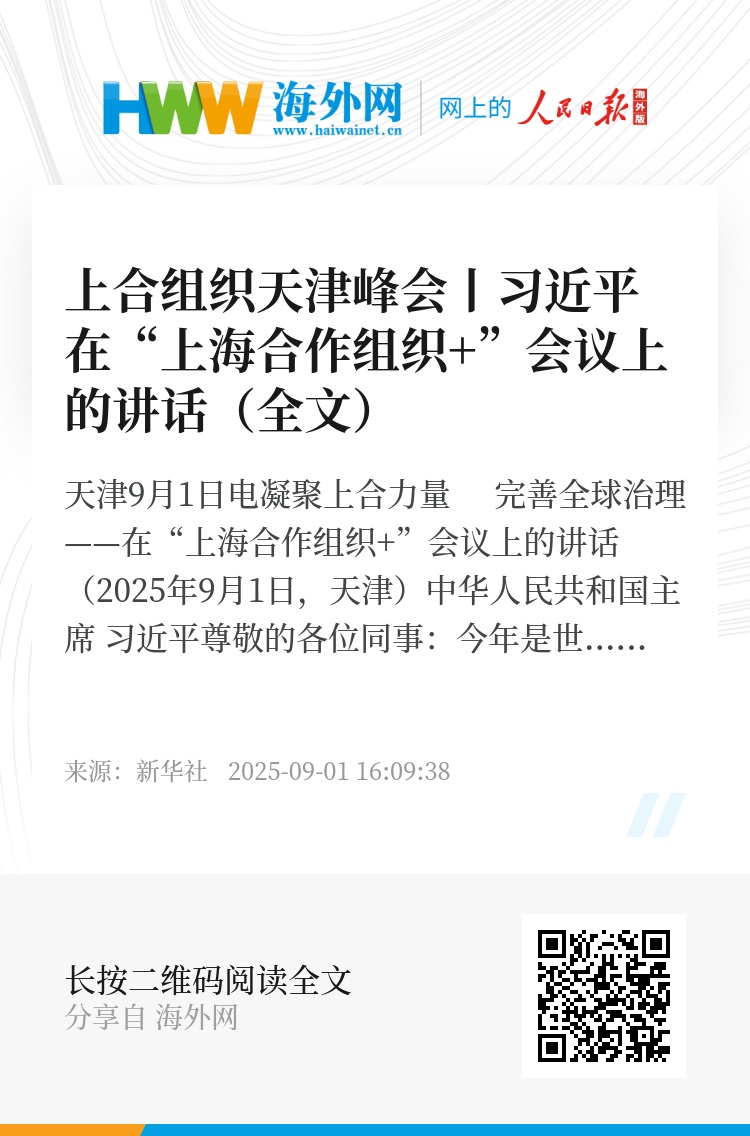 上海合作组织在成立宣言和组织宪章中开宗明义指出,要推动国际政治经济秩序朝着更加民主、公正、合理的方向发展。24年来,组织秉持互信、互利、平等、协商、尊重多样文明、谋求共同发展的“上海精神”,坚持地区事务共商、平台机制共建、合作成果共享,提出并实施许多全球治理新理念,日益成为全球治理体系建设和改革的积极推动力量。