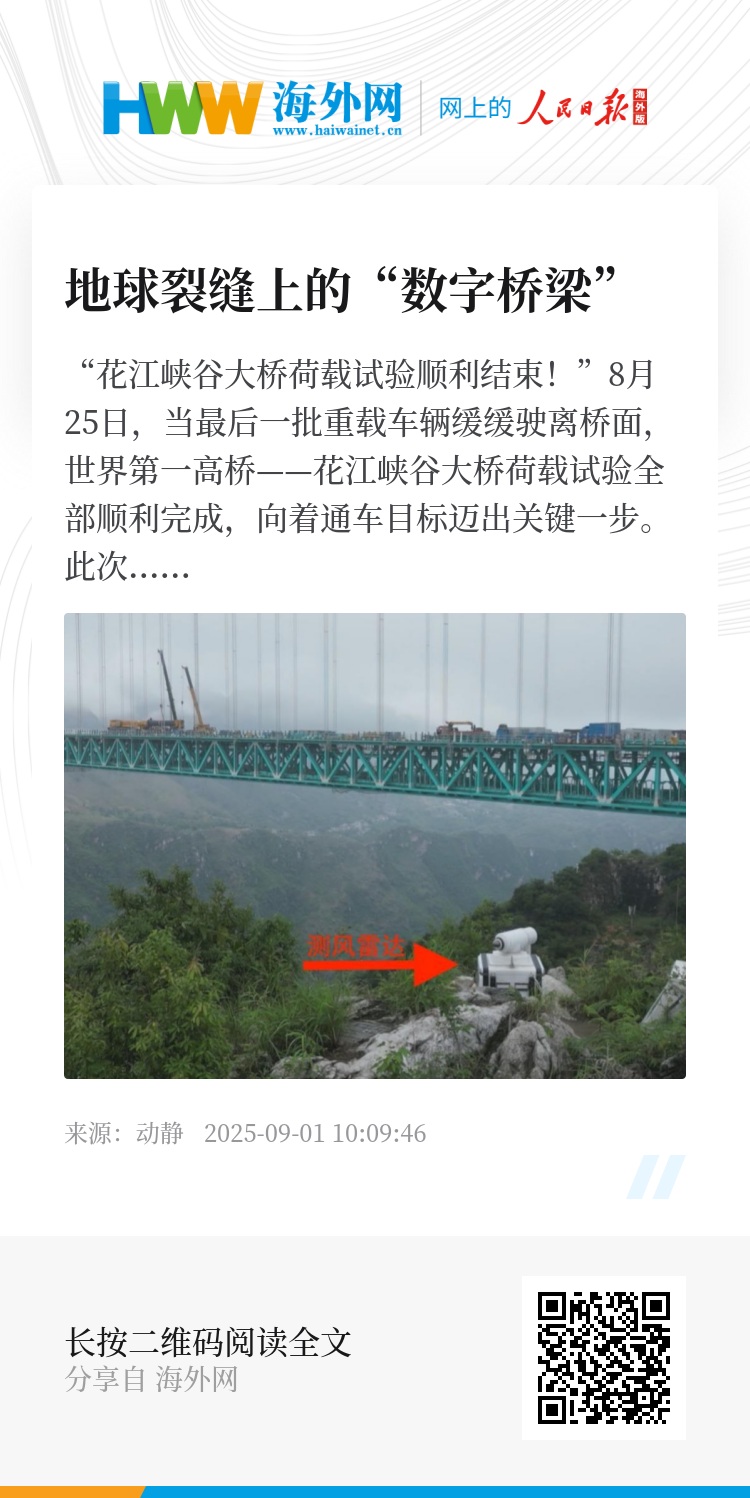 “相当于给这座桥不可更换的‘筋骨’植入了一套神经感知系统,能24小时为它做全面体检。这套系统首次实现了对主缆内部温度、湿度、受力等关键健康指标的实时监测,能有效预防因内部锈蚀或应力异常而引发的潜在风险。”欧阳松说,所有数据无线传输至后台,使维护团队能从“事后补救”转变为“事前预警”,实现精准维护、降低成本,并为同类桥梁的科研积累了极其宝贵的第一手数据。