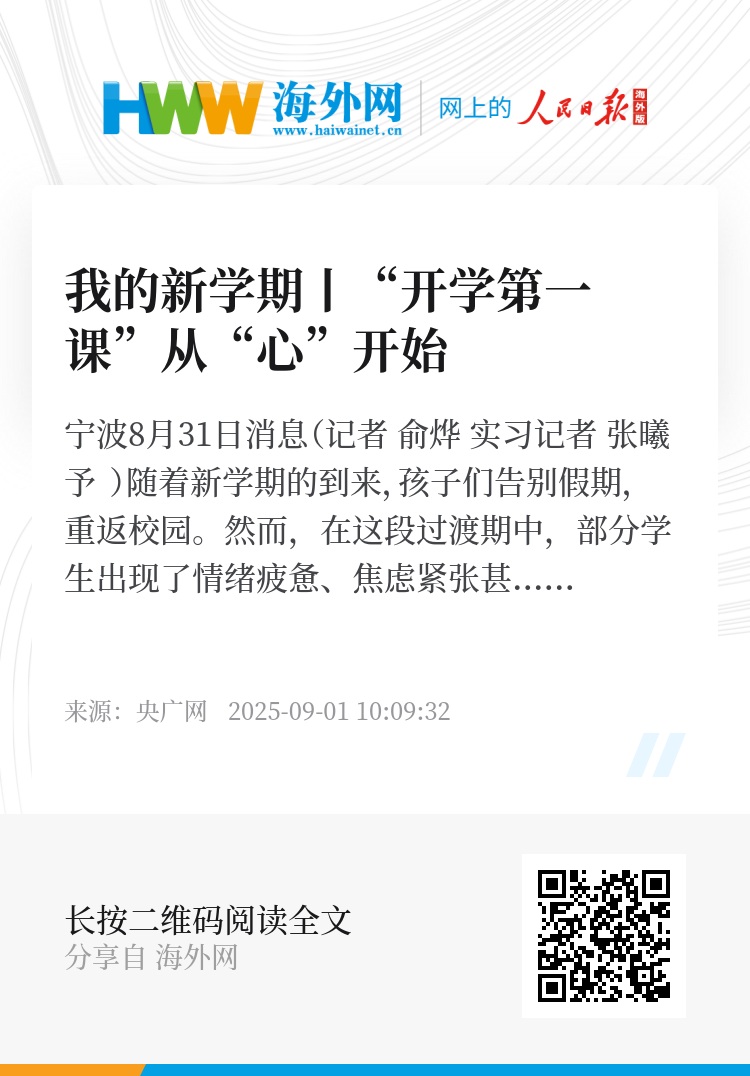央广网宁波8月31日消息(记者 俞烨 实习记者 张曦予 )随着新学期的到来,孩子们告别假期,重返校园。然而,在这段过渡期中,部分学生出现了情绪疲惫、焦虑紧张甚至拒绝上学等“开学综合征”的表现。究竟什么是“开学综合征”?“开学综合征”冒头,该如何应对?当孩子出现哪些 “信号”时,父母需要警惕并寻求专业支持?宁波大学附属康宁医院儿少心理科主任医师程芳给出相关建议。