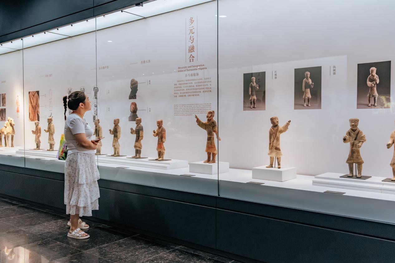 离公园不远的咸阳老街,青砖灰瓦、树荫掩映,依然保留着明清时期的街巷格局。尤其是夜幕降临时,小吃摊热气腾腾,饸饹的香气萦绕巷弄,浓浓的人间烟火气。咸阳博物院就坐落于老街一隅,西汉彩绘兵马俑、西汉玉仙人奔马、唐代錾花金执壶……馆内16万余件文物,默默讲述着从秦砖汉瓦到唐彩宋瓷的历史变迁。
