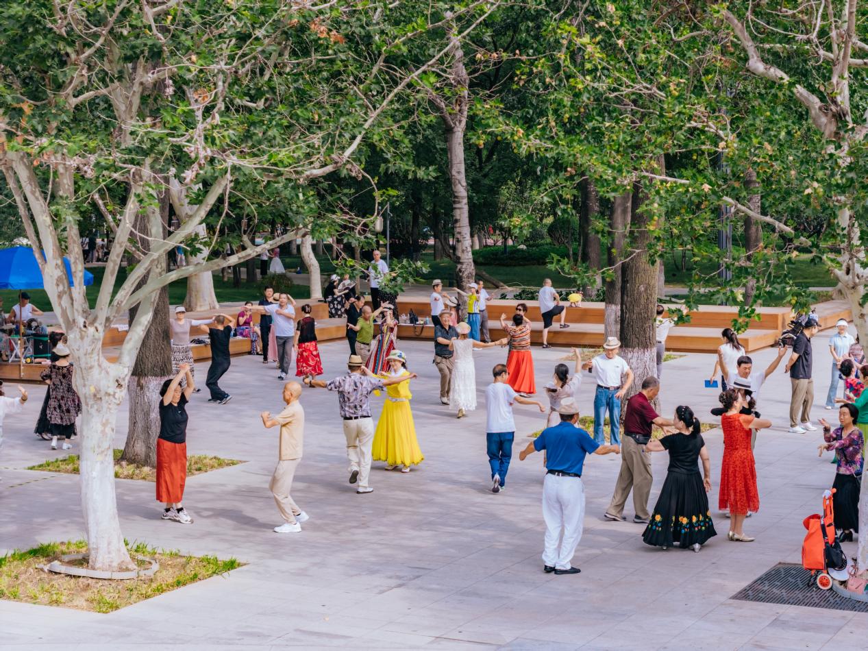 上午时分,咸阳渭滨公园已然十分热闹。广场上舞姿翩跹,秦腔嘹亮。儿童嬉戏玩耍,老人散步聊天,处处载歌载舞,洋溢着幸福的生活气息。这座始建于1959年的老公园,历经多次改建提升,已成为集园林、文化、游乐、观赏等于一体的综合型文化娱乐休息场所。