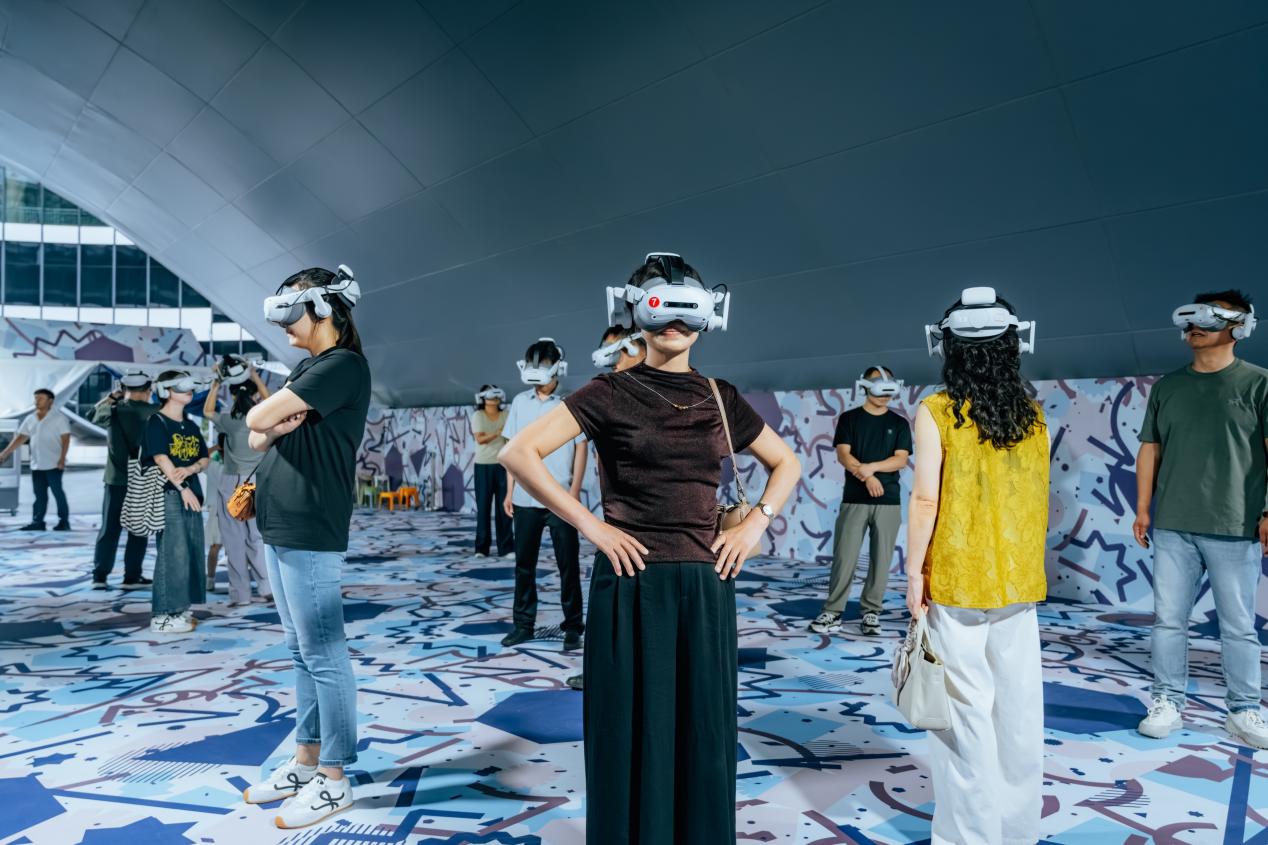 咸阳高新区内,中国西部AI创新港以“0和1”的计算机语言为设计灵感的圆形建筑,如科幻基地般矗立。传统与现代、真实与虚拟正在这里发生奇妙的化学反应。《大秦纪》VR全感空间、《飞跃大秦》裸眼3D影院、XR虚拟拍摄等沉浸式体验场景,吸引了众多年轻人前来打卡。