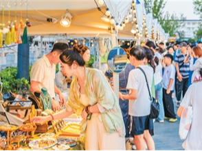 消费者在江苏省苏州市姑苏区相门城墙广场市集选购商品。蔡亮摄(人民视觉)
