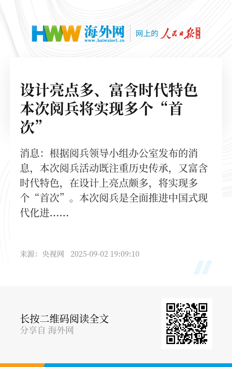 央视网消息:根据阅兵领导小组办公室发布的消息,本次阅兵活动既注重历史传承,又富含时代特色,在设计上亮点颇多,将实现多个“首次”。
