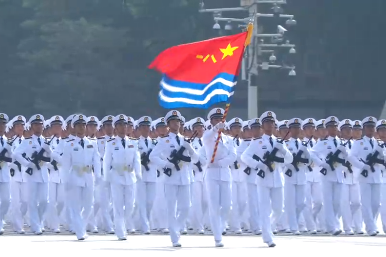 纵横万里海疆,建功远海大洋。海军方队接受检阅。