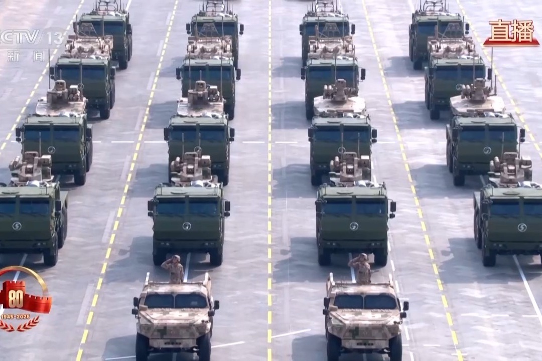 这次阅兵,23个装备方队分为7个作战群,无人作战群3个方队之陆上无人作战方队接受检阅。