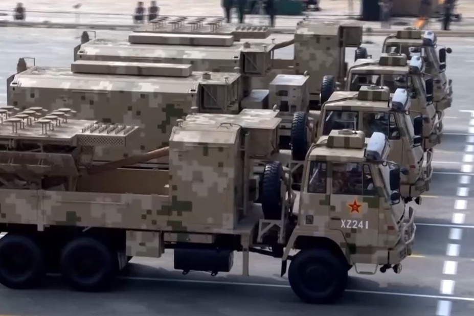 这次阅兵,23个装备方队分为7个作战群,信息作战群3个方队之电子对抗方队接受检阅。