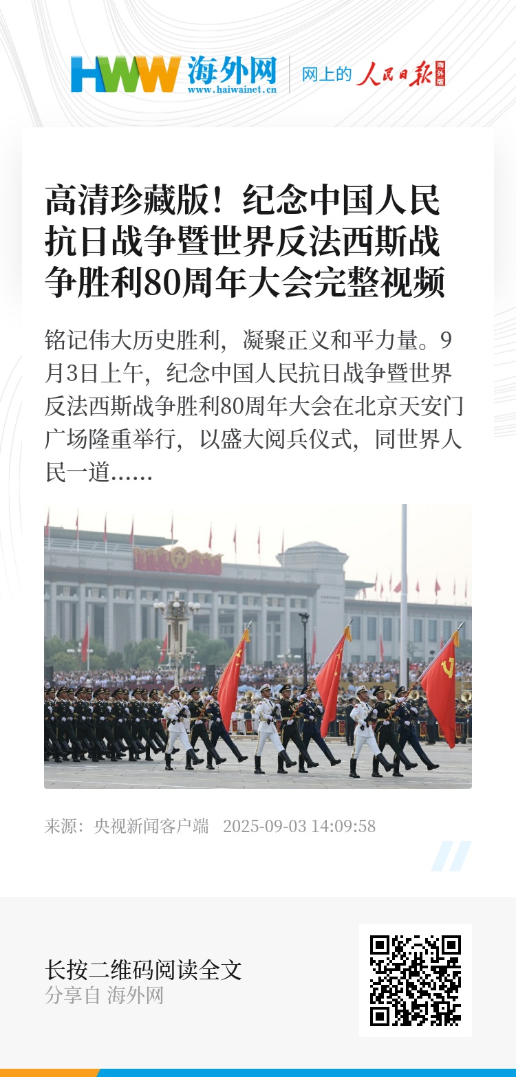 铭记伟大历史胜利,凝聚正义和平力量。9月3日上午,纪念中国人民抗日战争暨世界反法西斯战争胜利80周年大会在北京天安门广场隆重举行,以盛大阅兵仪式,同世界人民一道纪念这个伟大的日子,共同开创更加光明的未来。