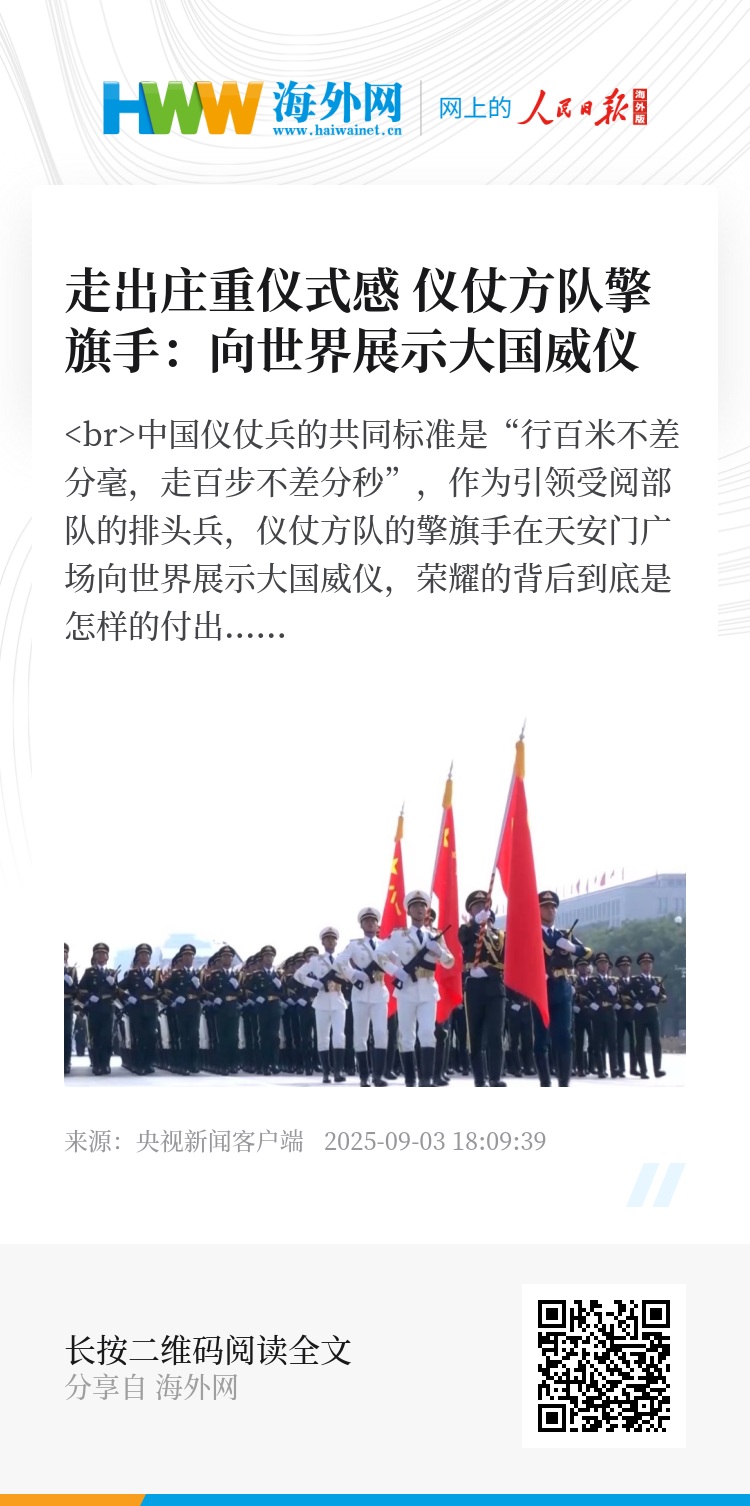 中国仪仗兵的共同标准是“行百米不差分毫,走百步不差分秒”,作为引领受阅部队的排头兵,仪仗方队的擎旗手在天安门广场向世界展示大国威仪,荣耀的背后到底是怎样的付出?