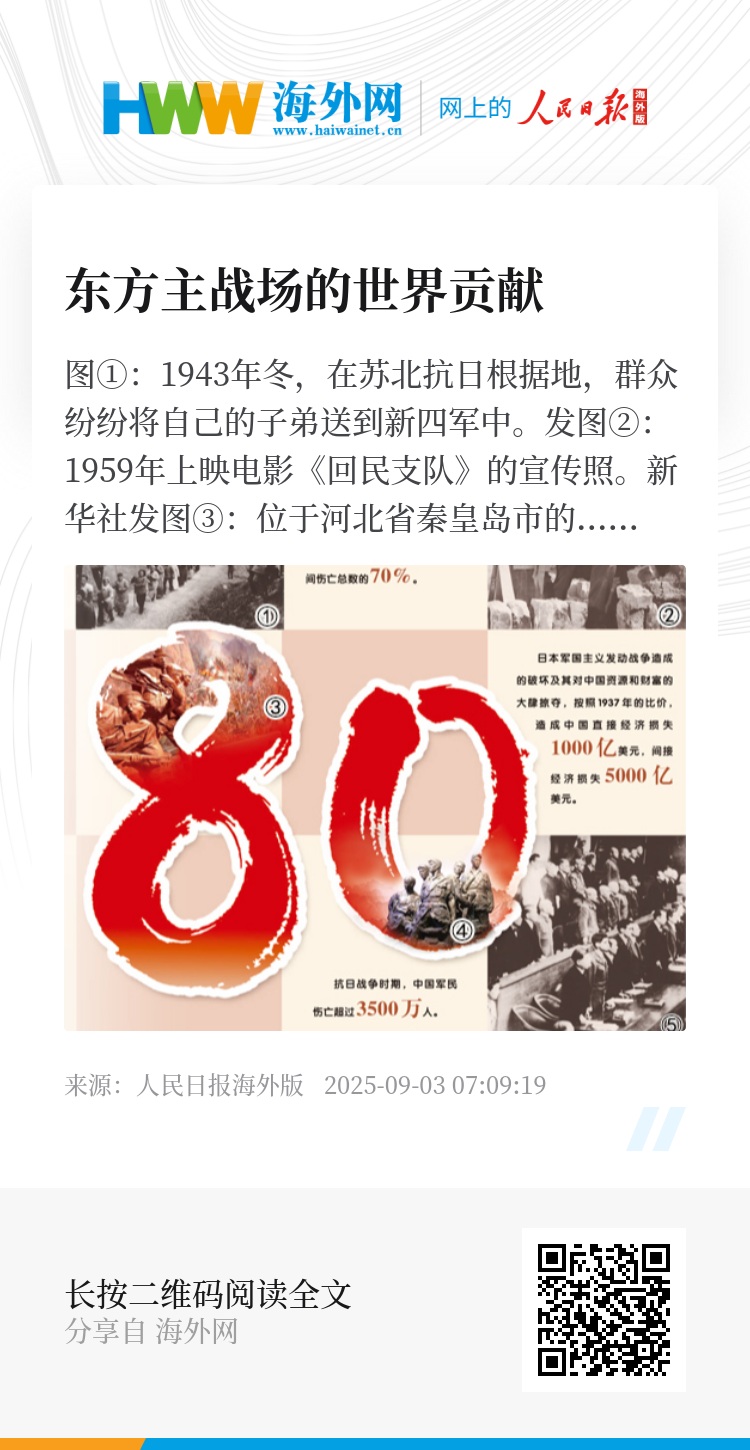 今年是中国人民抗日战争暨世界反法西斯战争胜利80周年,回望那段烽火岁月,中国人民抗日战争开始时间最早、持续时间最长。作为第二次世界大战的东方主战场,中国为世界反法西斯战争胜利作出了重大贡献,捍卫了人类正义与和平的伟大事业。