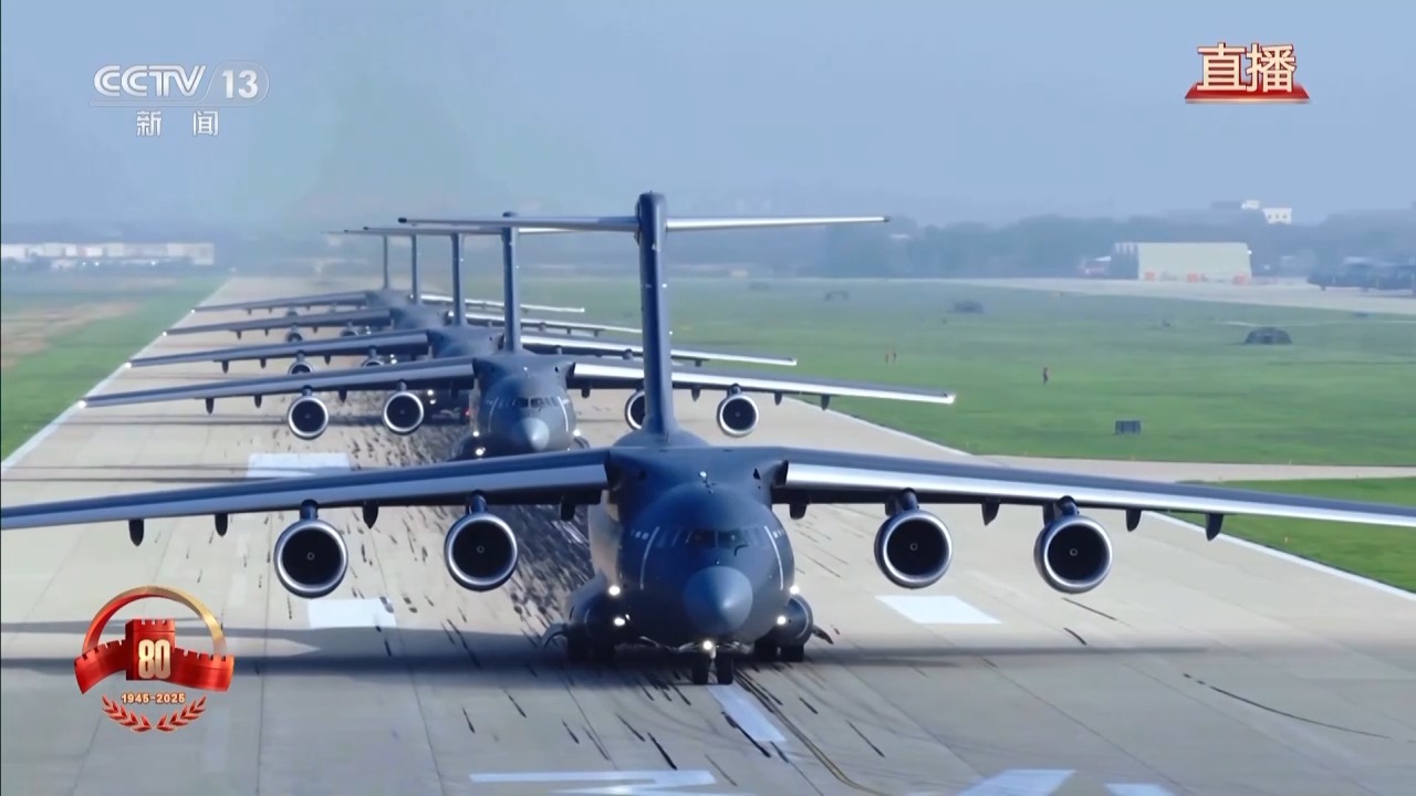 空中梯队的战机从首都周边多个机场陆续起飞,将飞越天安门广场,光荣地接受检阅。