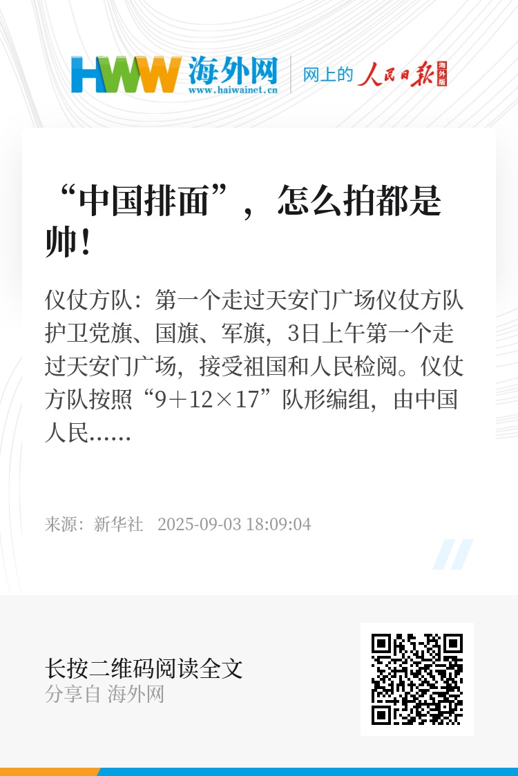 仪仗方队护卫党旗、国旗、军旗,3日上午第一个走过天安门广场,接受祖国和人民检阅。