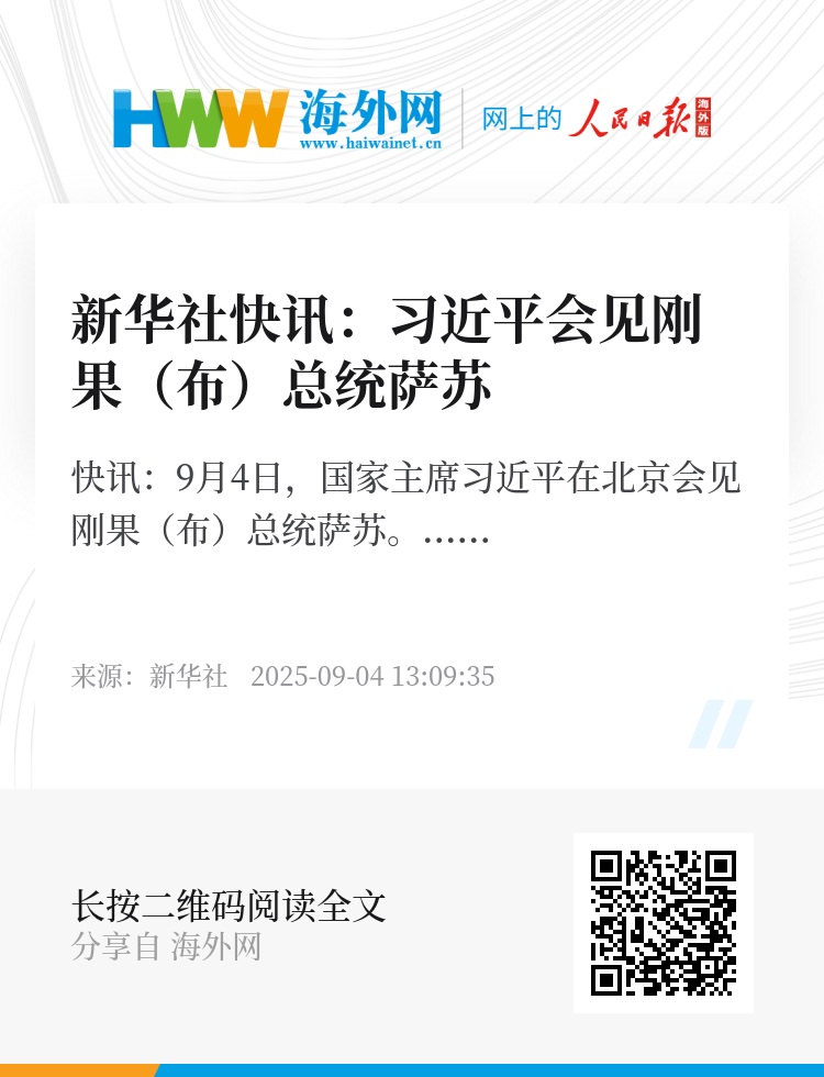 新华社快讯:9月4日,国家主席习近平在北京会见刚果(布)总统萨苏。