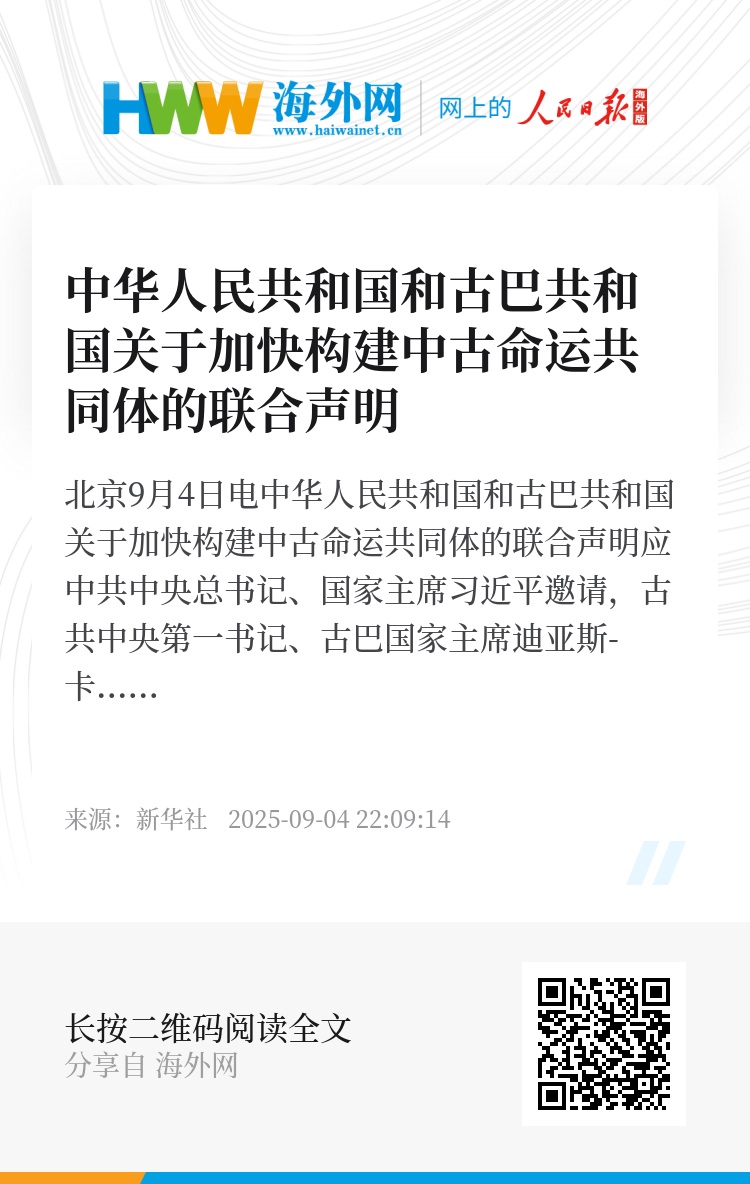 中华人民共和国和古巴共和国关于加快构建中古命运共同体的联合声明
