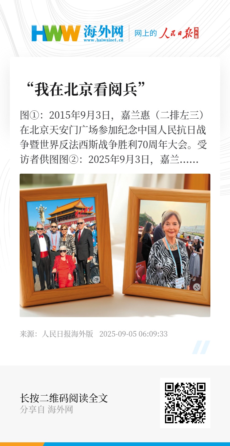 和10年前一样,2025年的9月3日也是个晴朗的好天气。“2015年我刚来北京时,天天下雨,结果到了观礼当天就放晴了。今年阅兵也是个晴天。”嘉兰惠说,“这也许是抗战英雄对子孙后代的祝福。”