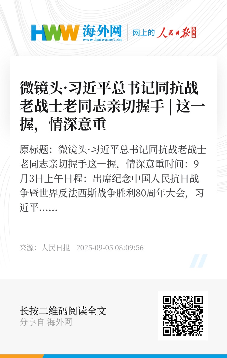 日程:出席纪念中国人民抗日战争暨世界反法西斯战争胜利80周年大会,习近平总书记同抗战老战士老同志亲切握手