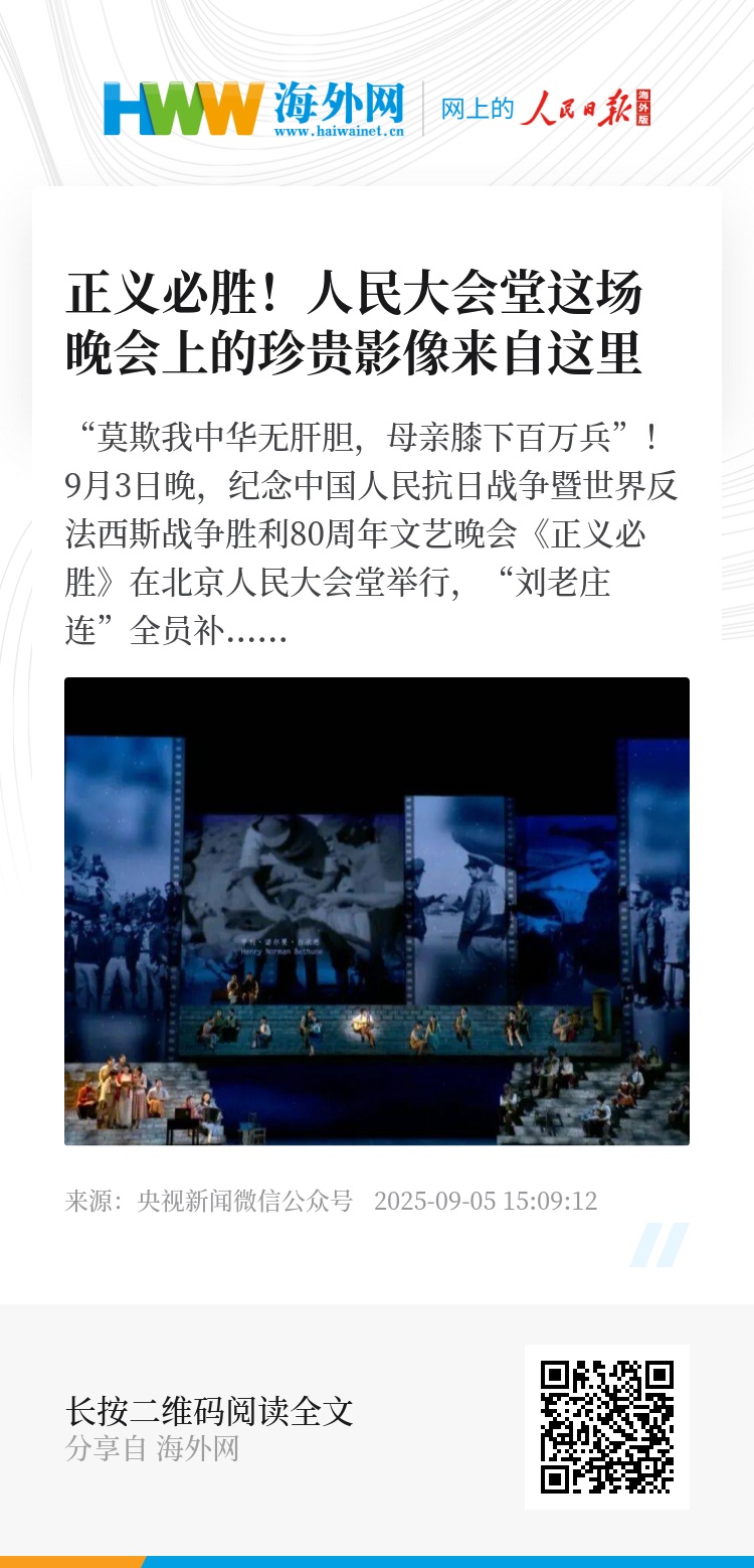 “莫欺我中华无肝胆,母亲膝下百万兵”!9月3日晚,纪念中国人民抗日战争暨世界反法西斯战争胜利80周年文艺晚会《正义必胜》在北京人民大会堂举行,“刘老庄连”全员补齐的动人场景引发热议。