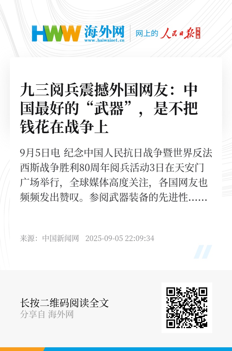 中新网9月5日电 纪念中国人民抗日战争暨世界反法西斯战争胜利80周年阅兵活动3日在天安门广场举行,全球媒体高度关注,各国网友也频频发出赞叹。