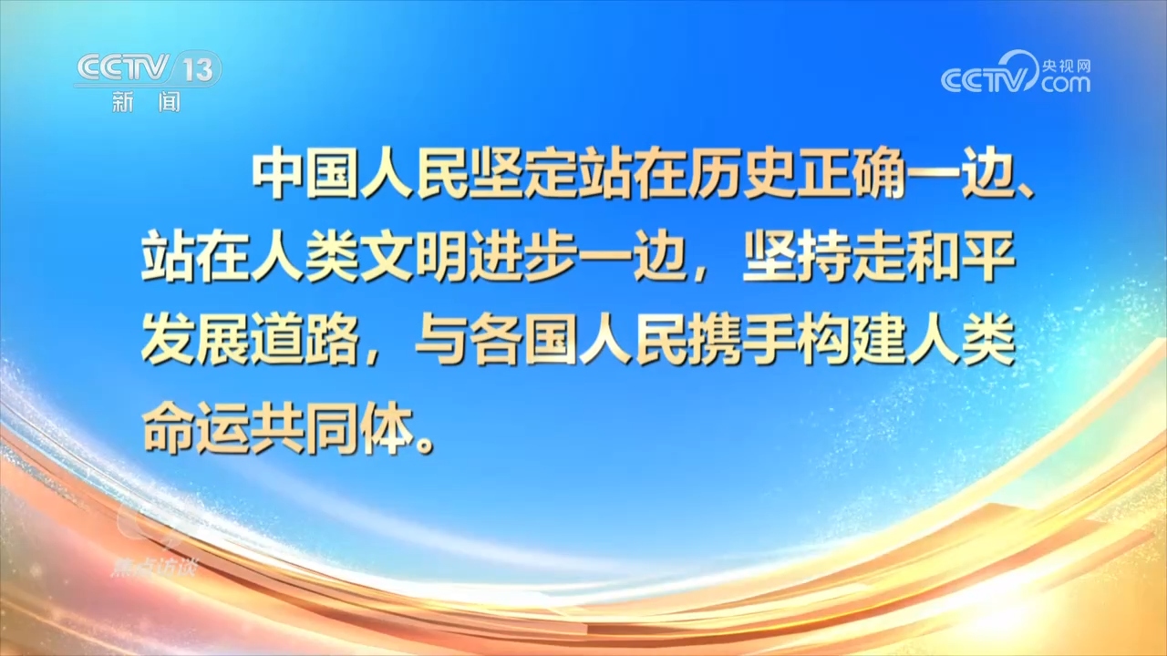 杨凤城:“这就是总书记的时代站位,这个时代站位从国内来讲,就是立足于中华民族复兴进入不可逆转的历史进程。我们要排除干扰,凝心聚力,以中国式现代化来实现强国目标;另外一个站位就是宽阔的国际视野,全球视野,构建人类命运共同体,这是世界各国都应该聚力的目标。所以和平发展、普遍繁荣、共同安全、持久和平,需要世界各国共同努力,中国会在其中起关键性作用。”