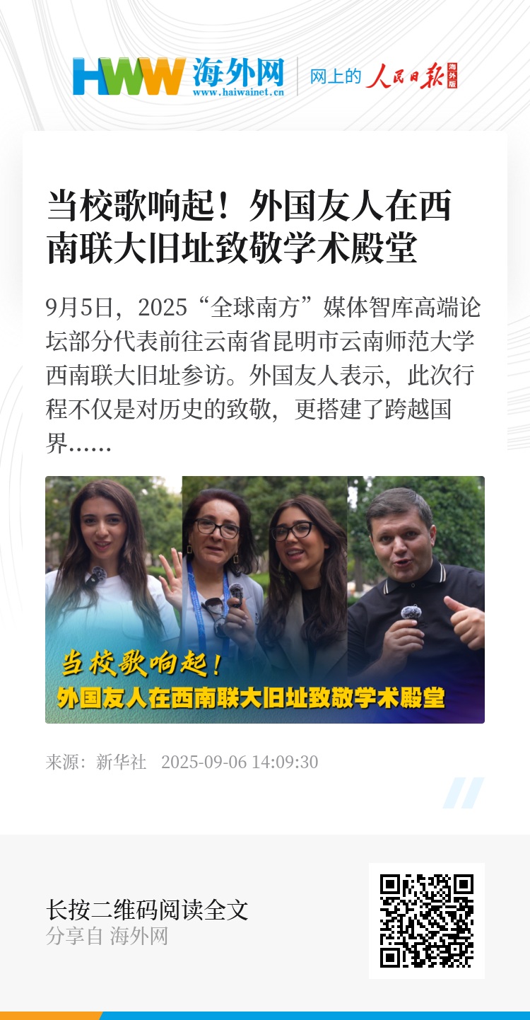 9月5日,2025“全球南方”媒体智库高端论坛部分代表前往云南省昆明市云南师范大学西南联大旧址参访。