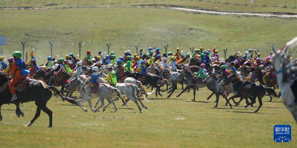 2024年8月12日,骑手在2024年恰青赛马节传统十公里大跑项目中角逐。新华社记者 晋美多吉 摄