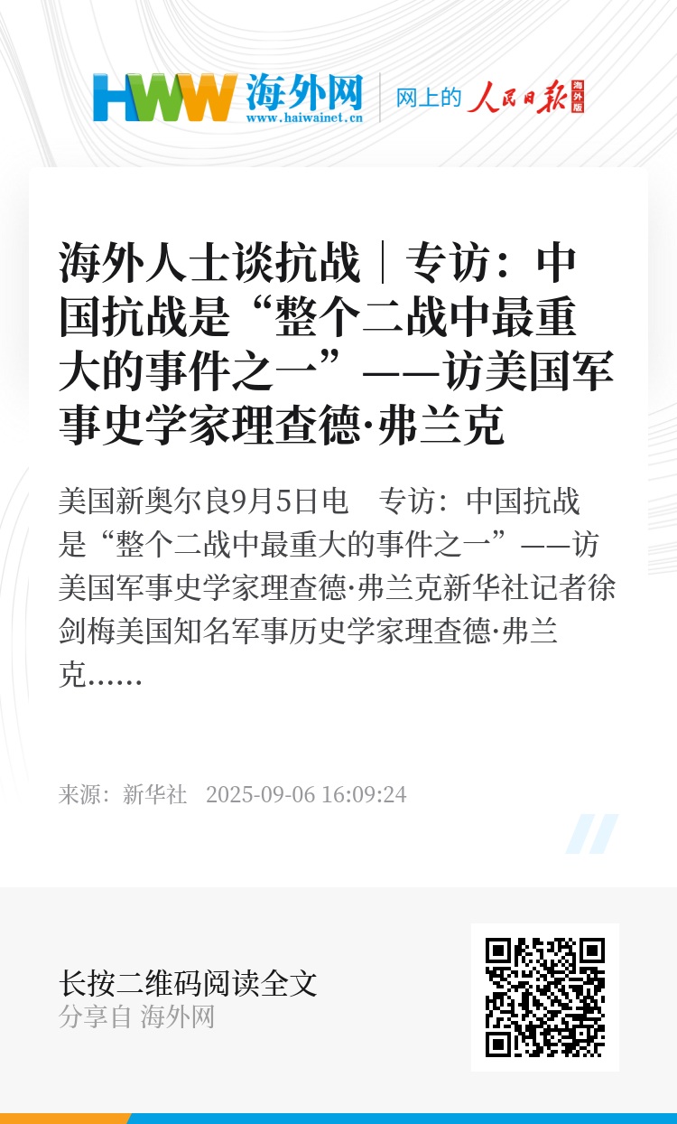 新华社美国新奥尔良9月5日电 专访:中国抗战是“整个二战中最重大的事件之一”——访美国军事史学家理查德·弗兰克