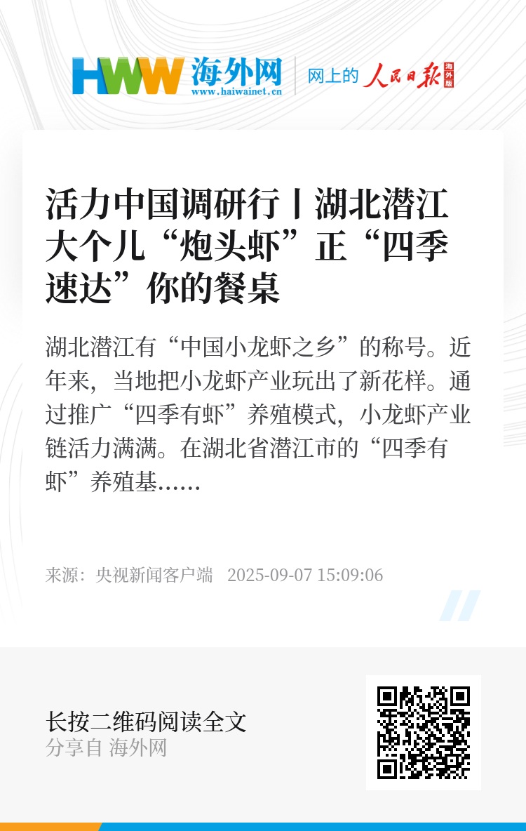 湖北潜江有“中国小龙虾之乡”的称号。近年来,当地把小龙虾产业玩出了新花样。通过推广“四季有虾”养殖模式,小龙虾产业链活力满满。