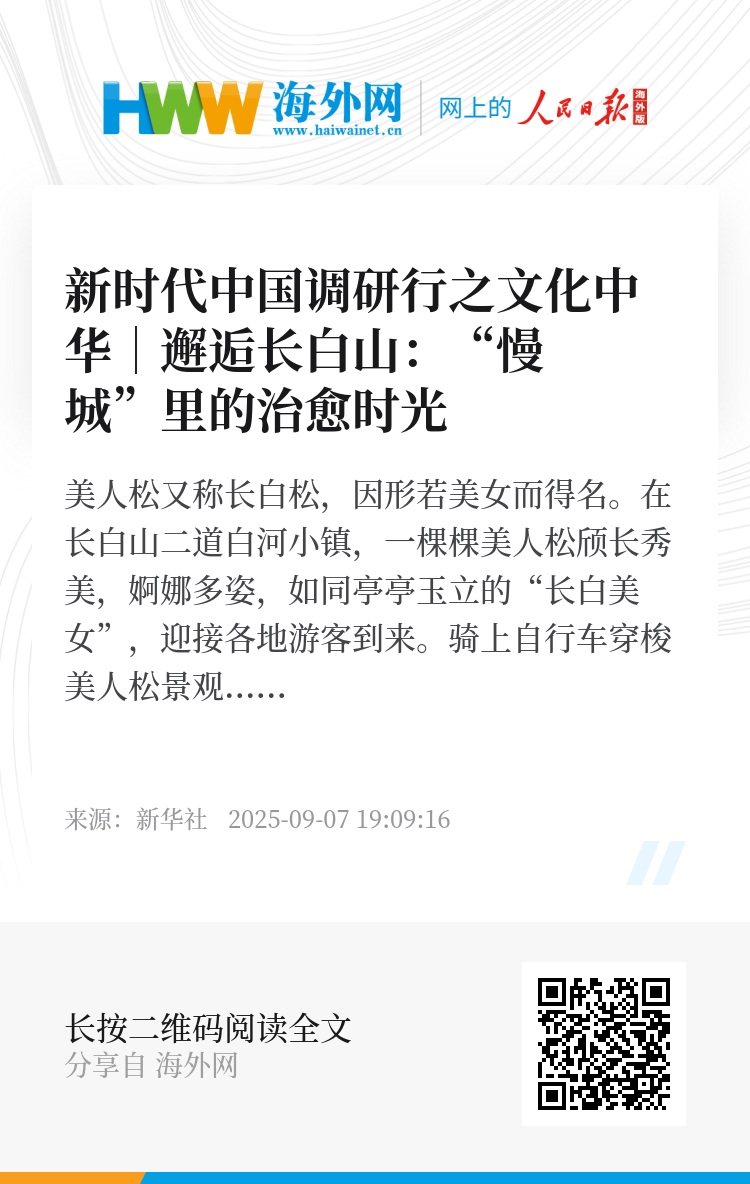 骑上自行车穿梭美人松景观带,置身林海用相机拍下绝美瞬间,踏入慢行廊道大口呼吸新鲜空气……长白山下,人们细细品味着这份宁静与惬意。