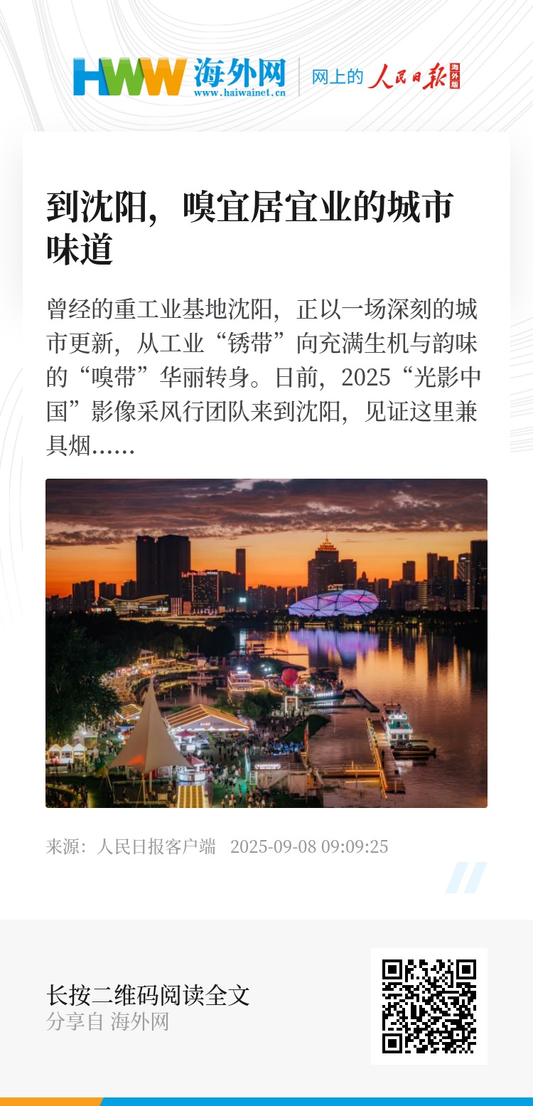曾经的重工业基地沈阳,正以一场深刻的城市更新,从工业“锈带”向充满生机与韵味的“嗅带”华丽转身。日前,2025“光影中国”影像采风行团队来到沈阳,见证这里兼具烟火气、人情味、时尚风、国际范的新气质,感受这里不断攀升的吸引力。