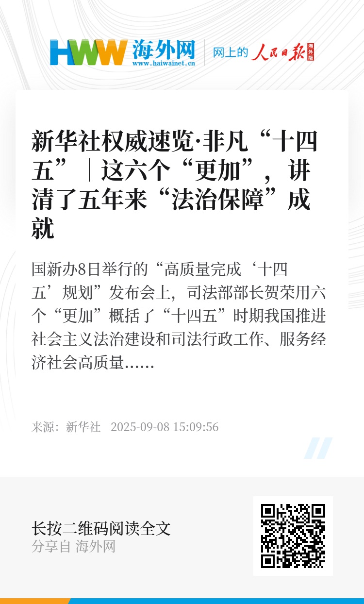国新办8日举行的“高质量完成‘十四五’规划”发布会上,司法部部长贺荣用六个“更加”概括了“十四五”时期我国推进社会主义法治建设和司法行政工作、服务经济社会高质量发展有关情况。一起了解下,司法行政工作如何为推进中国式现代化提供有力法治保障。