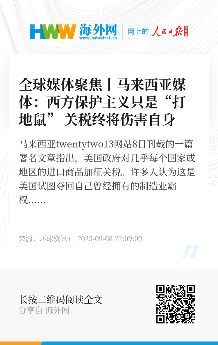 马来西亚twentytwo13网站8日刊载的一篇署名文章指出,美国政府对几乎每个国家或地区的进口商品加征关税。许多人认为这是美国试图夺回自己曾经拥有的制造业霸权的绝望之举。然而,经济学家却警告说,这是一条行不通的路。因为过去三十年不仅仅是美国制造业岗位的转移——它们在中国构建了一个规模庞大、高度整合且技术先进的工业生态系统,以至于关税对西方而言更像是一种自我伤害,而非有效的战略手段。