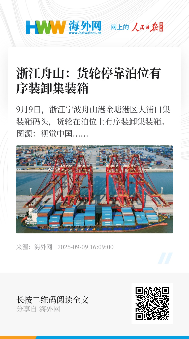 32893005,.浙江舟山:货轮停靠泊位有序装卸集装箱,.2025-09-09 16:46:00,.204589,.黄之安、陈亚楠