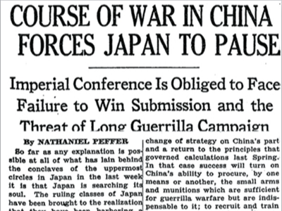1938年2月,一篇题为《中国以消耗战为战略基础》的报道认为,中日之间激烈的正面战斗,正在让位于规模较小的机动部队的战斗,中共与侵略者进行消耗战的战略可能更适合于中国抗战。另一篇报道通过采访八路军副总司令彭德怀,解释了游击战的基本战术,就是通过不断壮大抗日军力,依靠当地人民支持,对孤军深入的日军小股部队积极进行打击,各个击破。