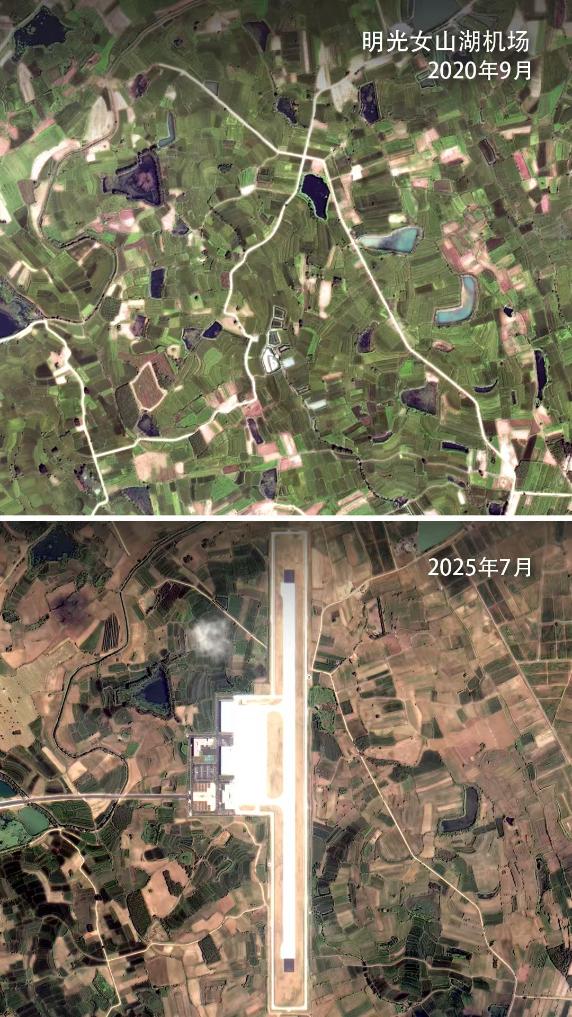 遥感卫星拍摄下明光女山湖机场从无到有的建设过程。新华社发