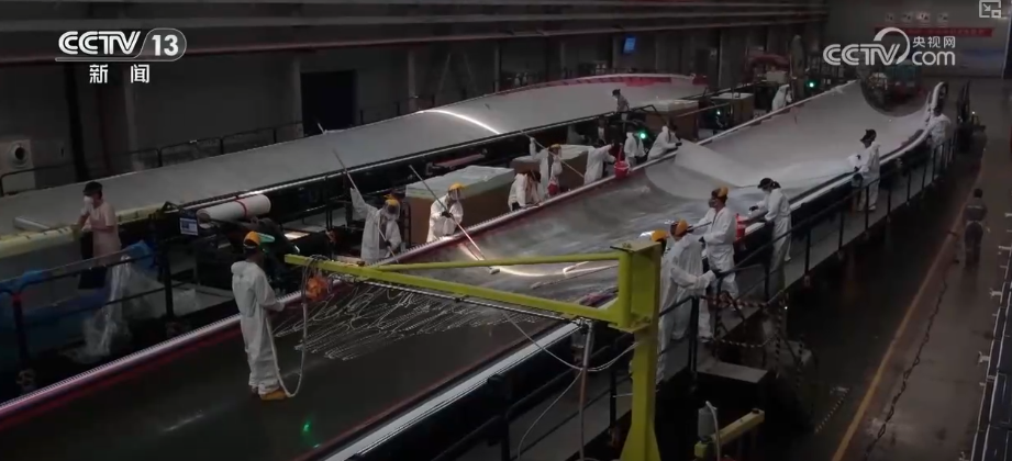记者沿着港口一路走到这家风电叶片制造企业,眼前一支长达123米的叶片正在成型,工人们正紧张作业。企业负责人介绍,顺应全球整机大型化、轻量化趋势,他们不断加大研发投入。这款“海上巨翼”一经推出,便迅速赢得国际市场的新订单,预计2025年产值将突破60亿元。