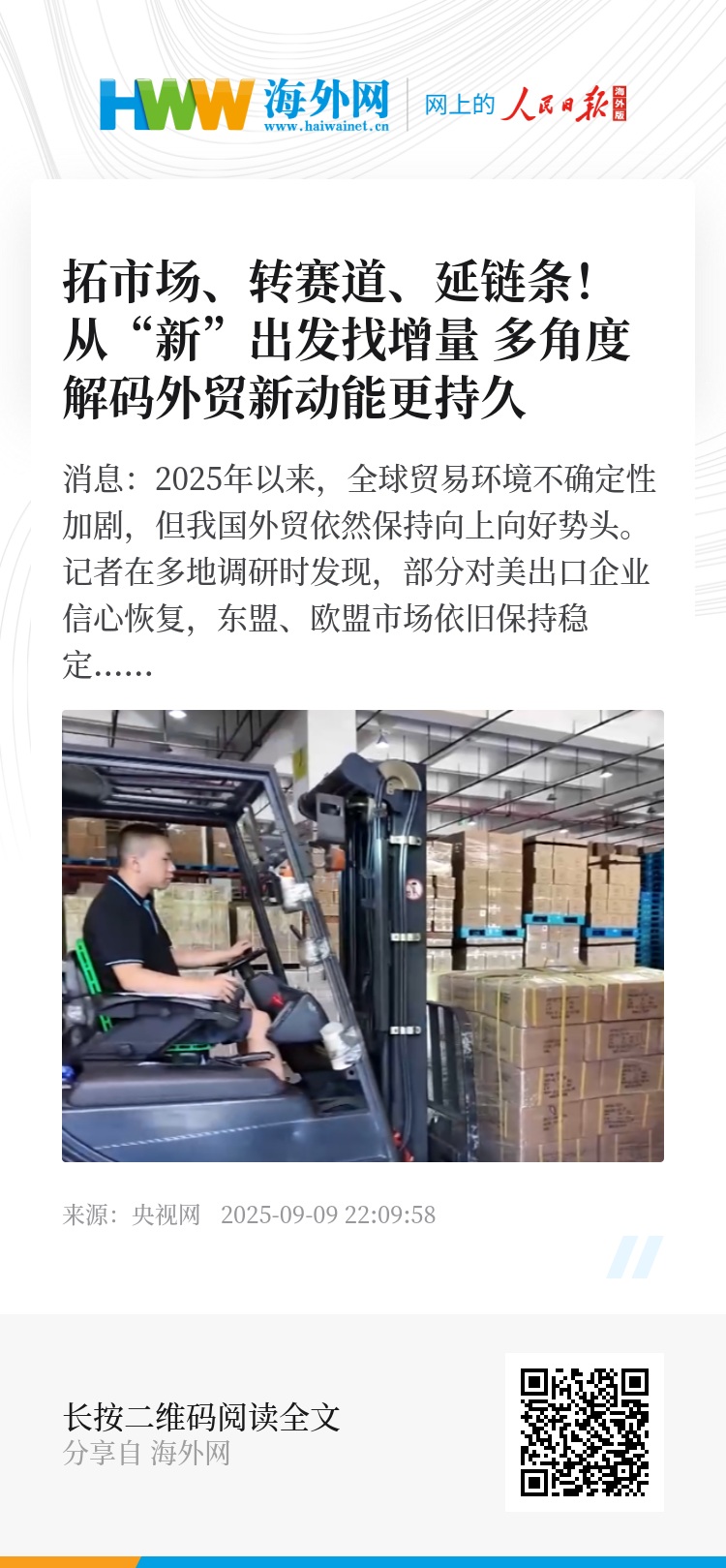 央视网消息:2025年以来,全球贸易环境不确定性加剧,但我国外贸依然保持向上向好势头。记者在多地调研时发现,部分对美出口企业信心恢复,东盟、欧盟市场依旧保持稳定增长。外贸企业正通过市场拓新、赛道转新、链条延新,寻找新增量、释放新动能。