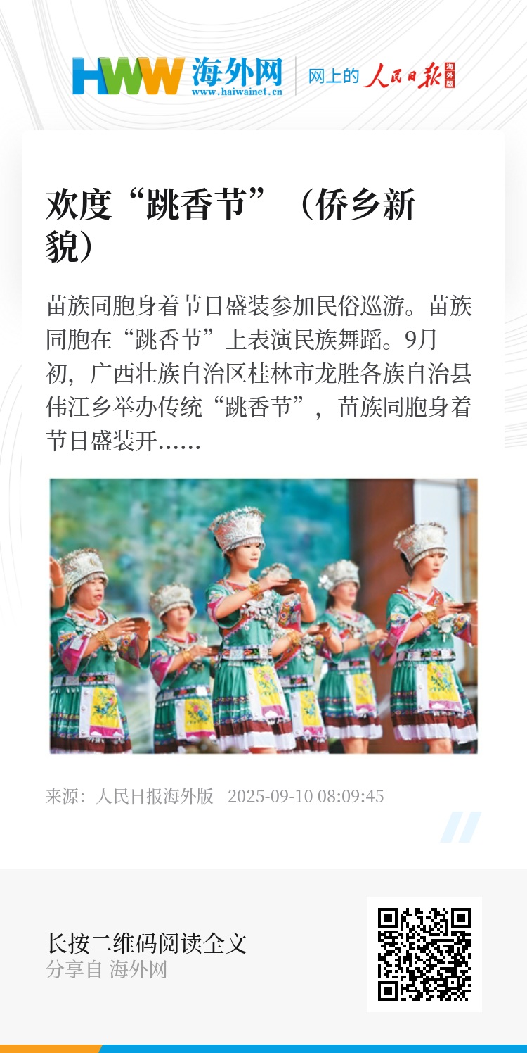 9月初,广西壮族自治区桂林市龙胜各族自治县伟江乡举办传统“跳香节”,苗族同胞身着节日盛装开展民俗巡游、歌舞表演等丰富多彩活动。