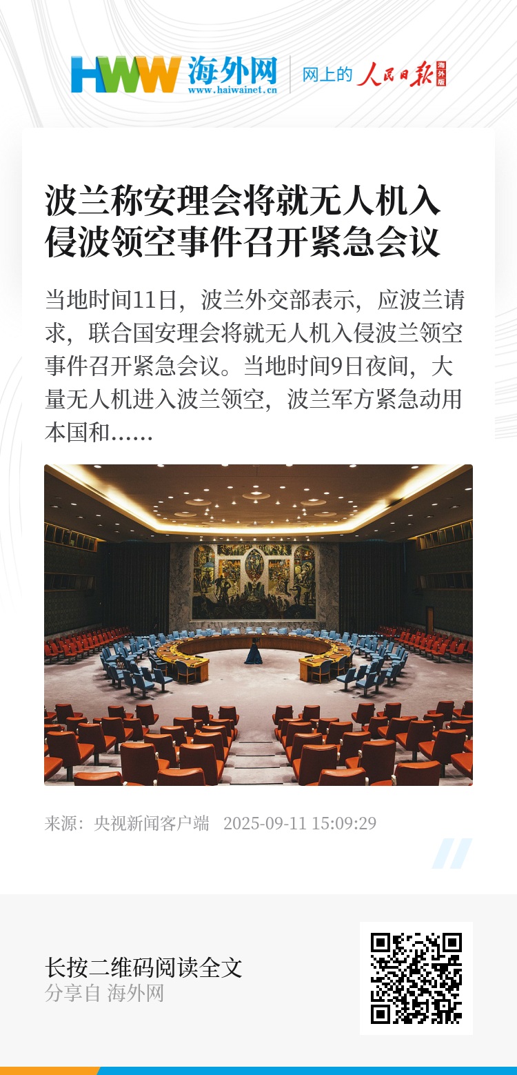 当地时间11日,波兰外交部表示,应波兰请求,联合国安理会将就无人机入侵波兰领空事件召开紧急会议。