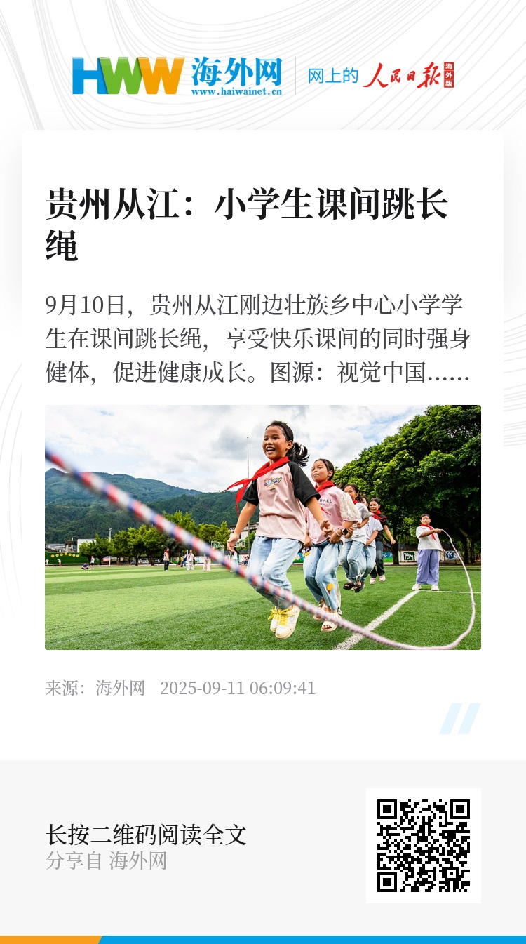 32893400,.贵州从江:小学生课间跳长绳,.2025-09-11 06:50:41,.204441,.张荣耀、李萌