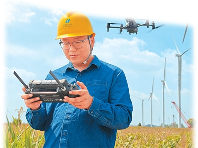 王磊操作无人机进行风机叶片巡检。宋知秋摄
