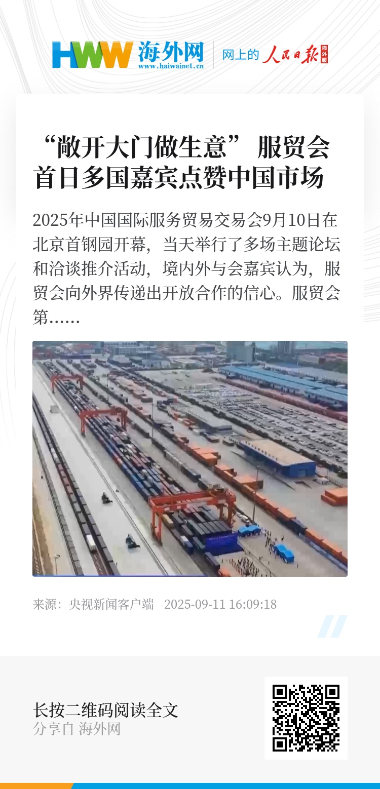 2025年中国国际服务贸易交易会9月10日在北京首钢园开幕,当天举行了多场主题论坛和洽谈推介活动,境内外与会嘉宾认为,服贸会向外界传递出开放合作的信心。