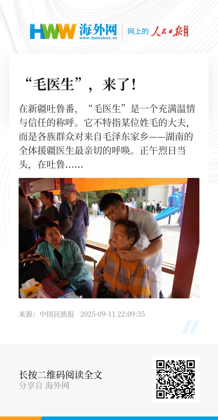 它不特指某位姓毛的大夫,而是各族群众对来自毛泽东家乡——湖南的全体援疆医生最亲切的呼唤。
