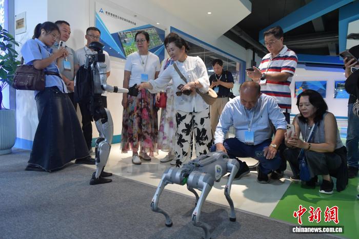 11日,“行走中国·2025 海外华文媒体漳州行” 活动中,海外华文媒体代表正在和机器人互动。中新网记者 张斌 摄
