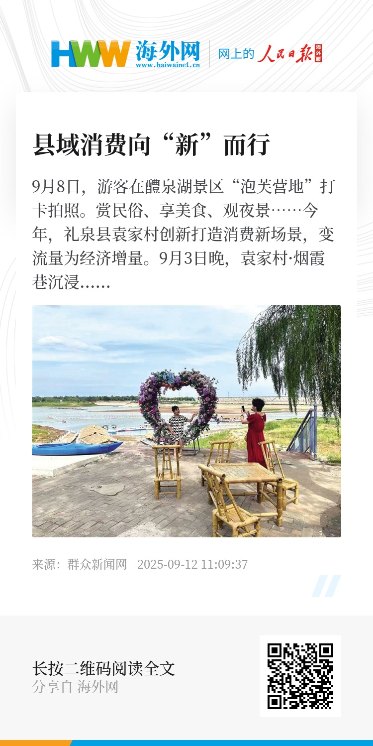 如今,从醴泉湖景区的“泡芙营地”到袁家村的互动街区,从直播间里的特产推介到物流车上的新鲜果蔬,礼泉处处涌动着消费的新活力。