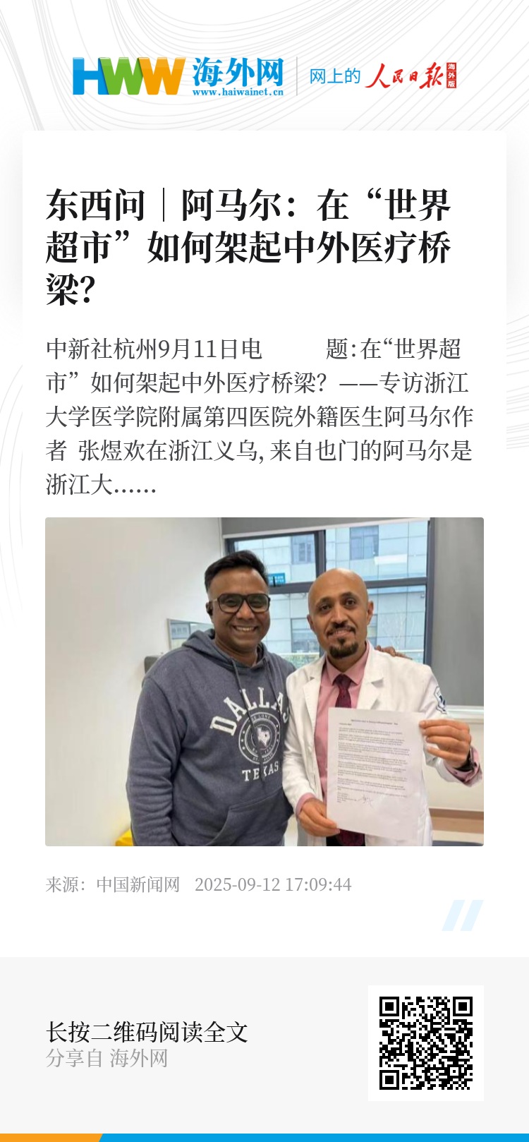 ——专访浙江大学医学院附属第四医院外籍医生阿马尔