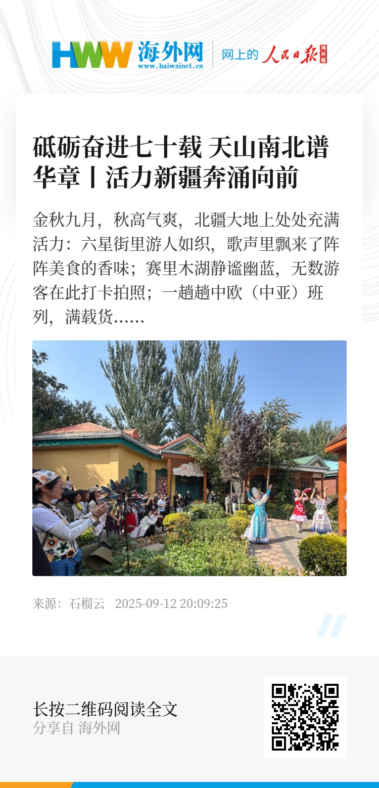今日的丰收蕴含着多年的努力。在自治区成立70周年的光辉历程中,新疆各族儿女齐心协力、共谋发展,每个人都在各自的岗位上贡献着力量,一幅活力新疆的美丽画卷正在徐徐展开。