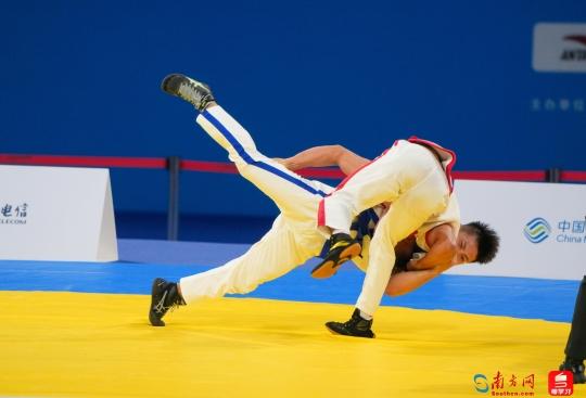 十五运会群众比赛中国式摔跤项目决赛比赛现场。