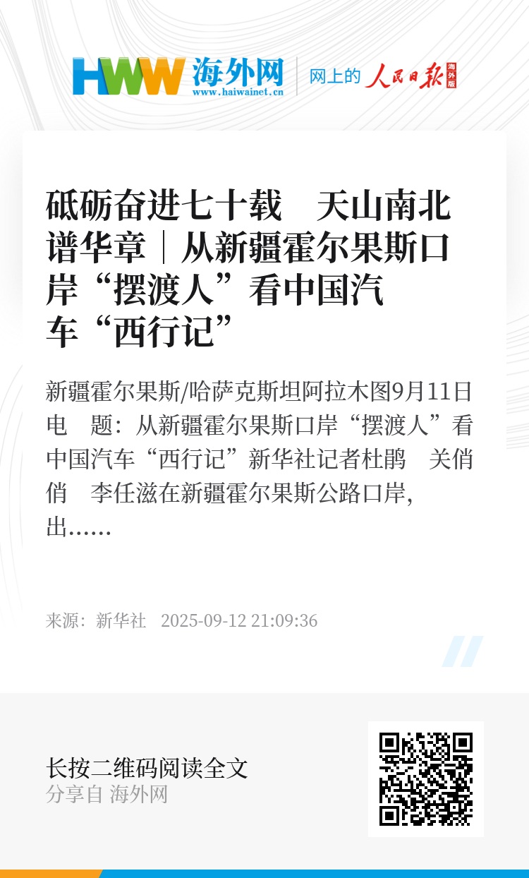 新华社新疆霍尔果斯/哈萨克斯坦阿拉木图9月11日电 题:从新疆霍尔果斯口岸“摆渡人”看中国汽车“西行记”