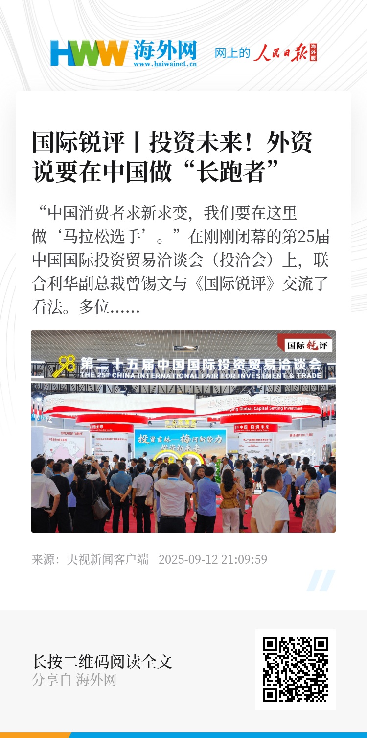“中国消费者求新求变,我们要在这里做‘马拉松选手’。”在刚刚闭幕的第25届中国国际投资贸易洽谈会(投洽会)上,联合利华副总裁曾锡文与《国际锐评》交流了看法。多位跨国公司高管表示,他们在华坚持“长期主义”,同时认为“老店也要弥新”,以跟上中国高质量发展的步伐。