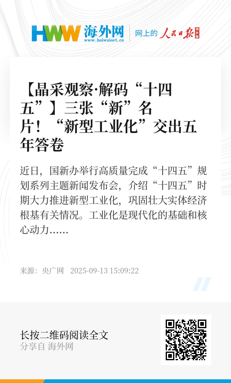 工业化是现代化的基础和核心动力。5年来,我们的“国本”是不是更强了,“家底”是不是更厚了,备受各方关注。我们就来说说有关新型工业化的这三张“新名片”。